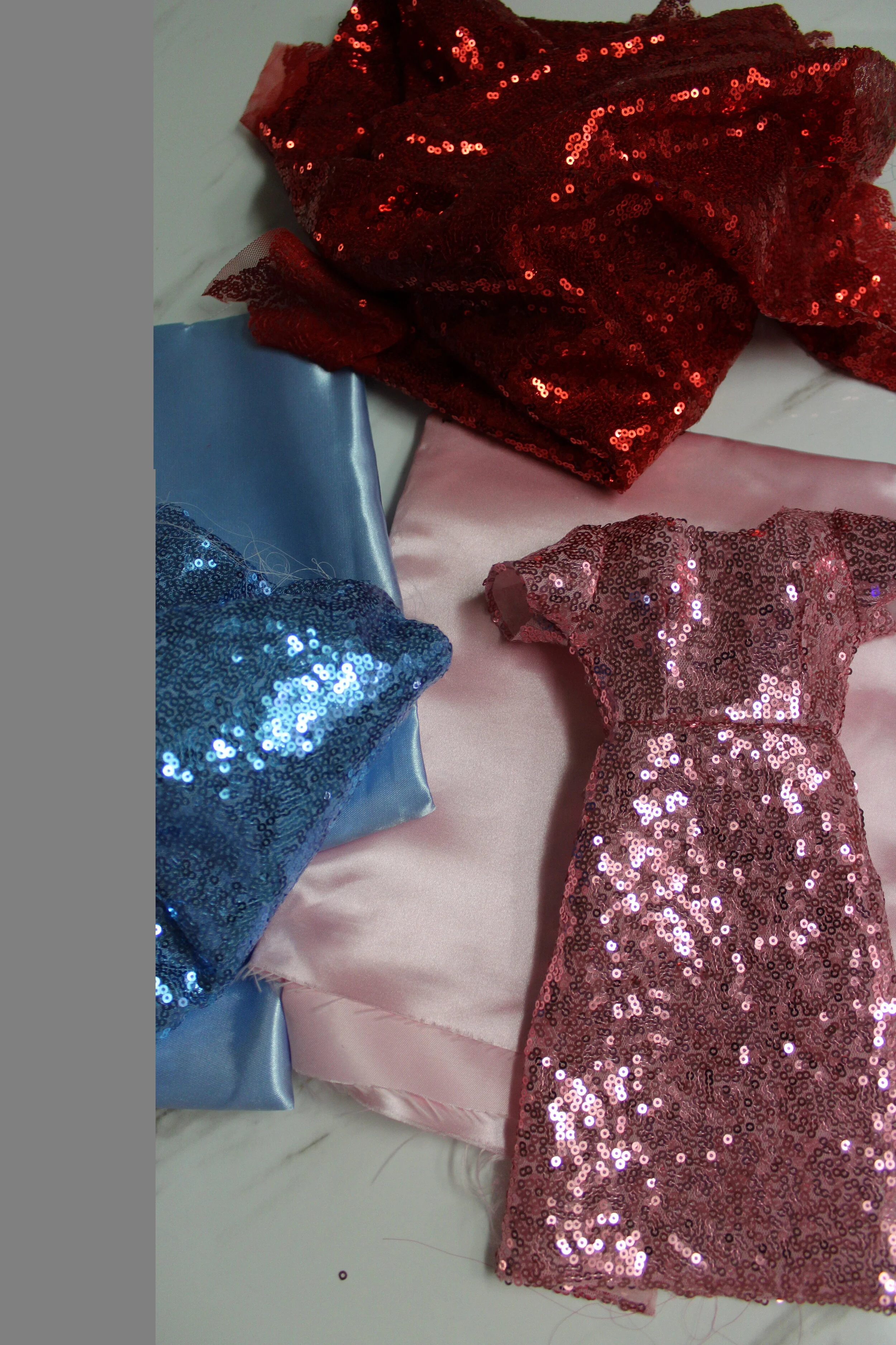 Started on the holiday sequin fashions for Cissy. Have a pink dress almost done and it will have a matching pink satin coat (the pink is spoken for at this time) Then I will start a blue set. I pulled out red sequin! Red sequins and white satin will be great Christmas colors. Maybe adding white trim to the blue would be good Hanukkah colors! Most will be ready to ship after December 6th. (See note below re; shipping). Also the colors in photo are turned out a bit darker than they actually are! I’ll say again and again-WOW - So many ideas dancing in my head and so little time! I continue to work slower than usual, not fast at getting “stuff” in shop. Stay tuned!